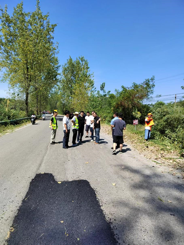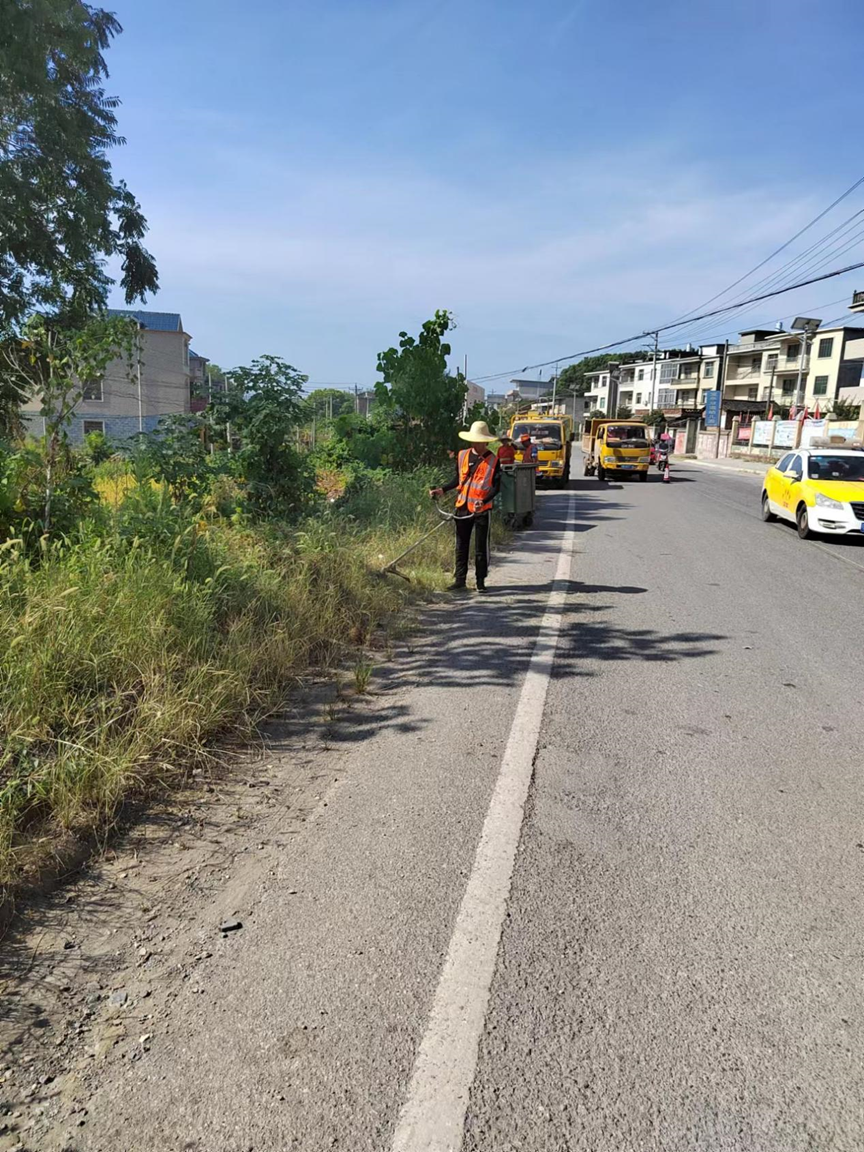 还有来自排市、木港、枫林、陶港管理站的养护职工们在道路上铲路肩、打路肩草、补路面坑槽。