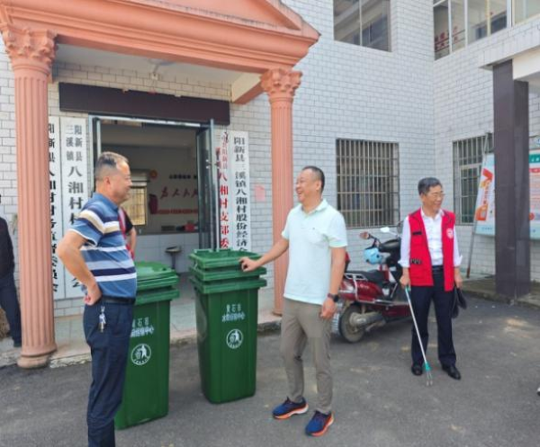 八湘村村支书明振斌组织中心职工及八湘村全体党员召开和美乡村共建工作会,会议对前期活动开展情况进行通报,进一步细化了共建任务、明确了工作要求,并对本次活动进行详细部署。此行,水陆中心购买了15个垃圾收纳容器专门用于人居环境整治工作,并根据各湾组实际情况进行摆放安置。随后全体人员分两组前往庞老屋组、庞新屋组对村民开展入户宣传,集中清理道路两侧及边沟内淤泥、陈年垃圾、枯枝杂草及广场上的杂物。