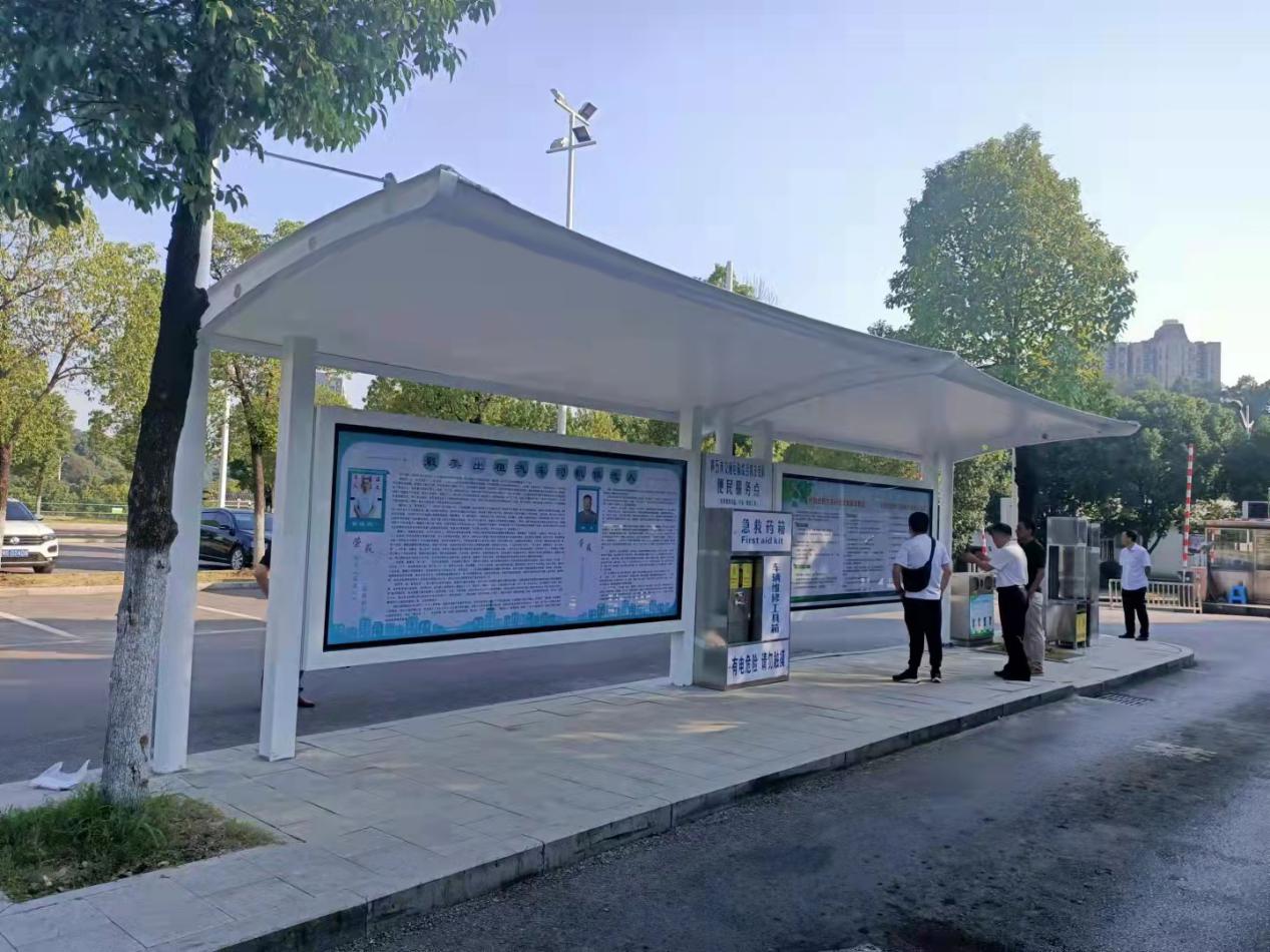 除了配备饮水设施,便民服务点还设置了急救药箱和车辆维修工具箱,为过往出租车司机免费提供相关便民服务。“最近这段时间天很热,这个服务点可以遮挡太阳,我们候客的时候可以下来走动休息一下,挺好的。”出租车司机郑师傅竖起大拇指谈到。