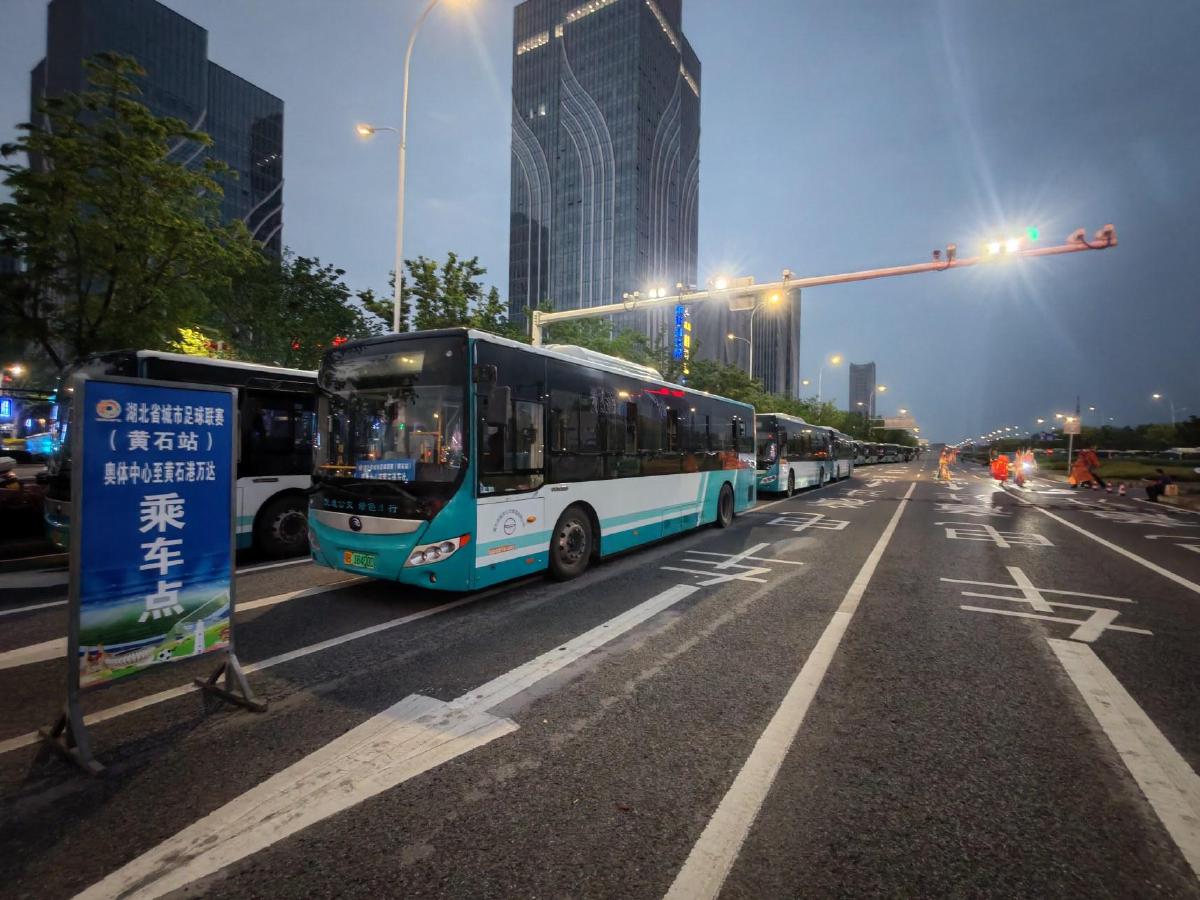 赛前的奥体中心周边,公共交通扛起了大梁。针对本地观赛群众,黄石交通部门提前优化运力供给。4条直达奥体中心的公交线路发车间隔压缩至8到12分钟,32台增配车辆上路运营。有轨电车同步加密至8至10分钟一班,增投1列电车。