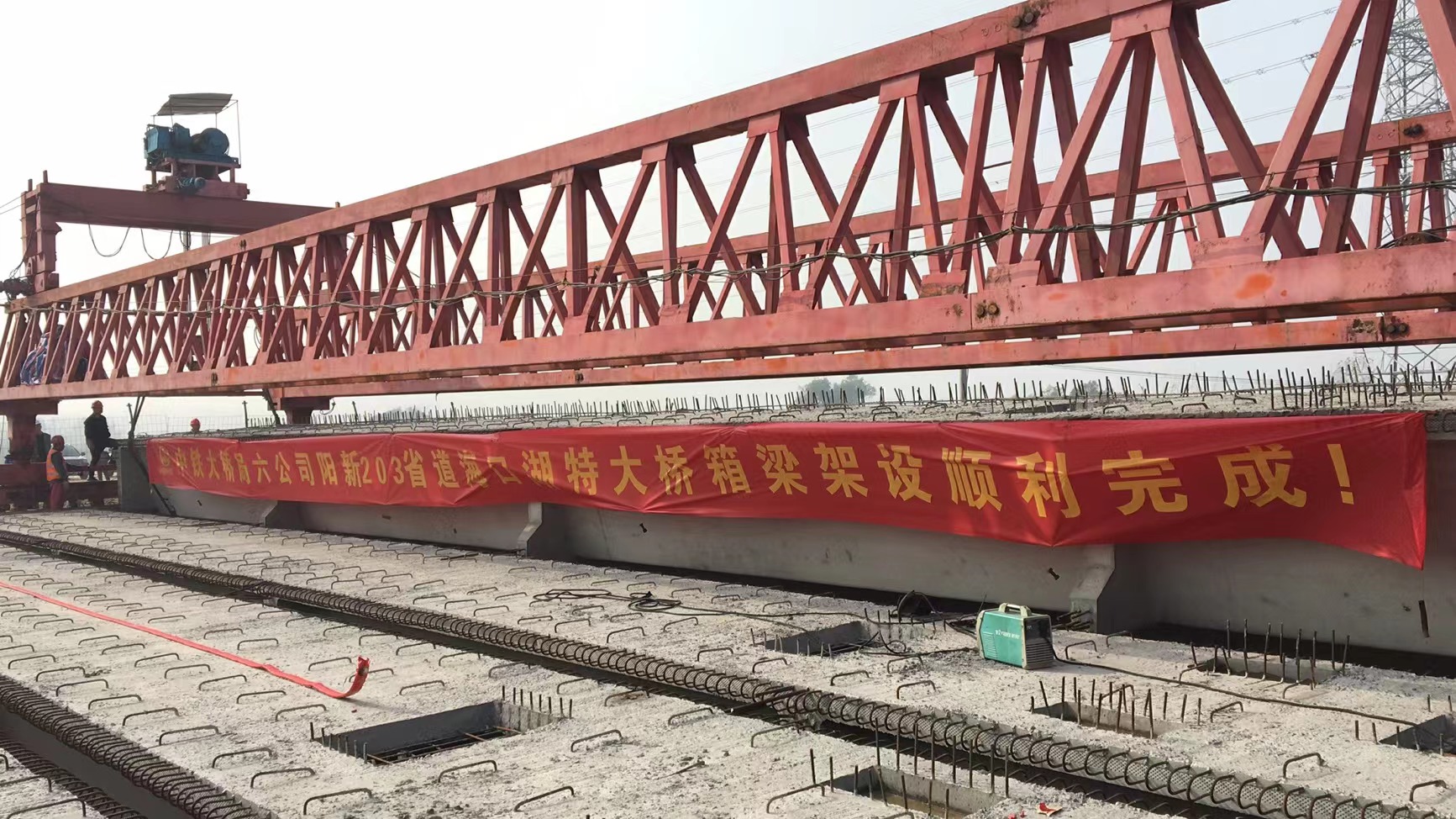 海口湖特大桥为该项目控制性工程,全长1357米,共360片30米预制箱梁。阳新203省道改建工程项目部总工程宋新木说,为圆满完成预制梁架设任务,项目部精心准备,周密部署,克服低温天气等不利因素。确保从吊梁、运梁、提梁、架梁的每个工序的有效衔接,为架梁工作高效有序推进提供了保障。