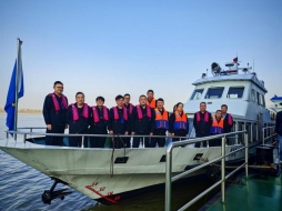 活动伊始,全体党员在执法艇的甲板上,集体重温入党誓词,铿锵有力的誓言在江面上回荡,表达了同志们坚守初心、牢记使命的坚定决心。随后,开展“深入学习四中全会精神 奋力冲刺全年目标任务”主题党日活动,集中组织学习了党的二十届四中全会精神。同志们认真研读相关文件精神,深刻领会全会关于推进国家治理体系和治理能力现代化的战略部署,并结合交通运输执法工作实际,就如何将全会精神转化为提升执法效能、服务行业发展、保障人民群众安全便捷出行的具体行动进行了热烈讨论。