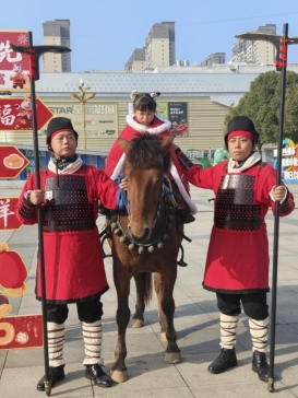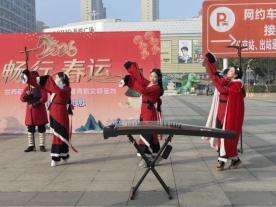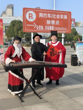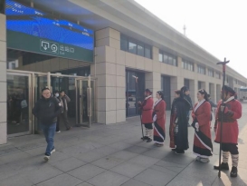 国风展演引客来,青铜文化绽光彩。活动现场,8名国风志愿者身着战国楚风服饰,化身“古韵使者”,与骏马一同亮相站前广场,特色文化展牌前成为旅客打卡合影的热门点位,定格归乡美好瞬间。一场精彩的“铜”话主题展演更是让现场年味拉满:铜都曲裾舞翩跹,尽显千年青铜文脉魅力;冯京状元的家乡故事娓娓道来,唤醒本土文化记忆;铜都卖货郎送上香甜的状元饼,将福气与美好祝愿传递给每一位旅客。沉浸式的国风体验,让返乡旅客在归乡第一站,便感受到大冶独特的文化底蕴。