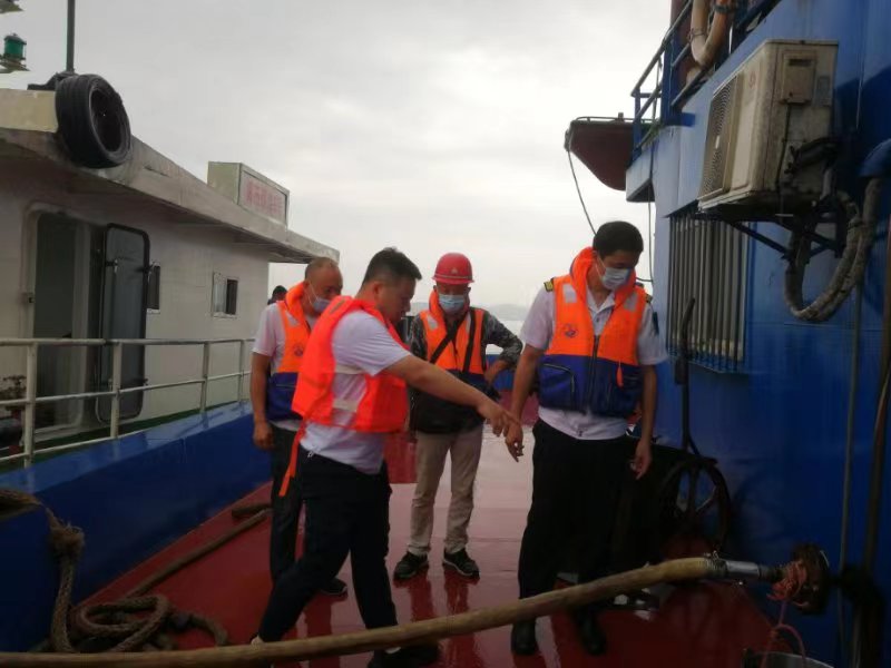 6月1日下午,检查组对德盛长江水上服务有限公司开展检查,着重检查了其污染物接收转运台账记录、工作趸船是否存在生物污水直排等情况,对其未配备污水计量设备等问题提出整改要求。